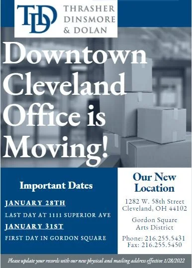 Thrasher, Dinsmore & Dolan’s downtown Cleveland office is moving!